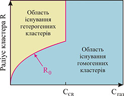 Визначення областей існування одно- та двокомпонентних кластерів, отримуваних з двокомпонентних газових сумішей речовин з необмеженою взаємною розчинністю [Low Temp. Phys. 41, No. 8, 637 (2015)].