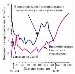 ● Розробка імітатора ВУФ та УМР випромінювання Сонця на кластерних струменях.