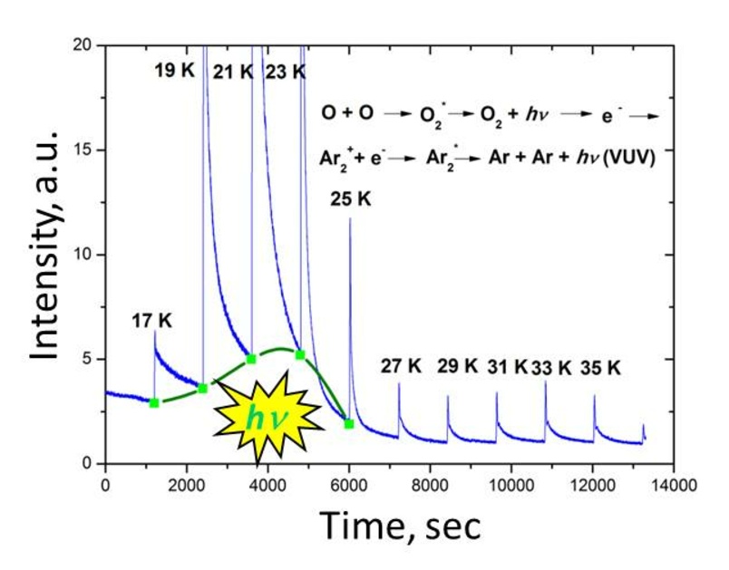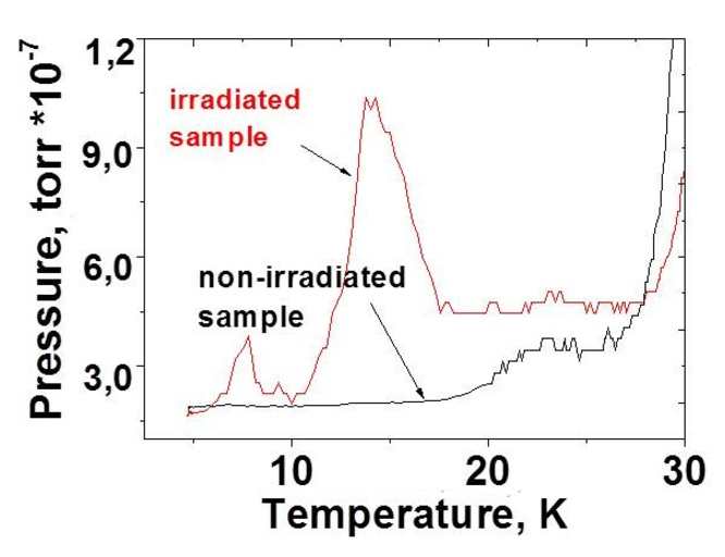 | ● | Anomalous low-temperature post-irradiation desorption of own particles from solid N2 |