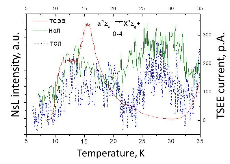| ● | Holes self-trapping in solid nitrogen with formation of N4+ centers is detected |