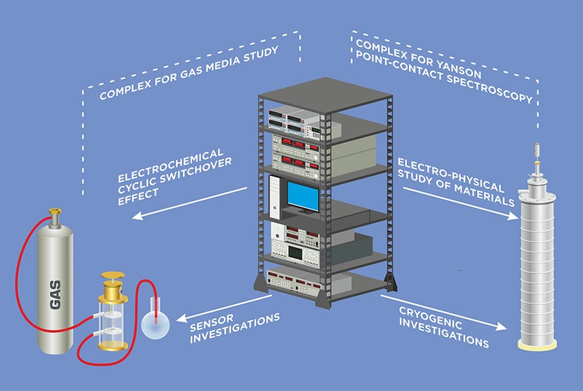 Research complex on the basis of the point-contact spectrometer is a multifunctional set-up, which meets the most stringent requirements for scientific equipment put forward by the leading laboratories from all over the world. The complex is designed for solving a wide spectrum of scientific and technical tasks, including: